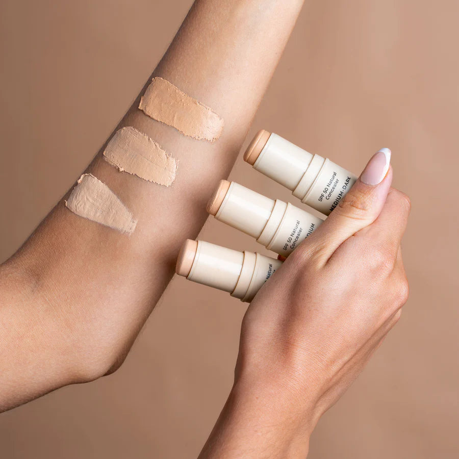 Introducing our latest innovation in natural sun protection and skin-loving makeup: the SPF 50 Natural Concealer. This physical zinc-based concealer is designed to deliver full coverage with a matte finish, seamlessly masking blemishes, pigmentation, and under-eye circles—while providing high-performance SPF 50 protection.