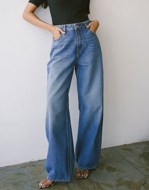 The Donna Baggy Jeans are high waist loose fit jeans with a wide leg. Made from 100% cotton.