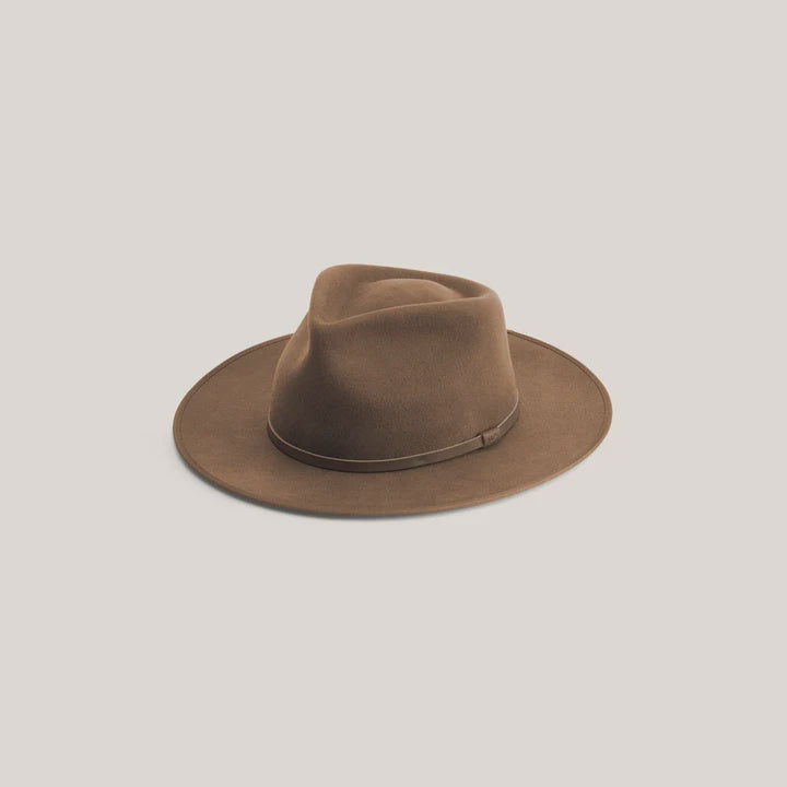 A flat brim fedora with a rigid teardrop crown and bound edge, the Calloway Fedora Fawn is crafted from 100% Australian wool and designed for both men and women. An absolute best seller of us at Bell & Luca.