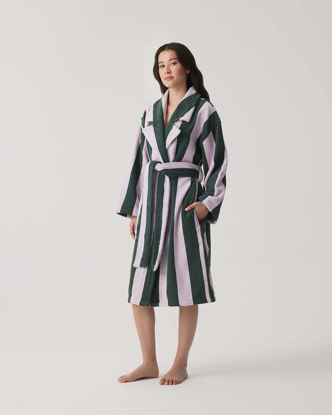 The perfect trans-seasonal robe for a poolside cocktail or a frosty winter morning. With its extra large belt for a snug or loose fit, and a modern notched lapel, our 100% cotton unisex robe doesn’t compromise style for comfort. Our robe is designed to be a bathroom essential and your beach day companion - bring Hommey comfort with you wherever you go.