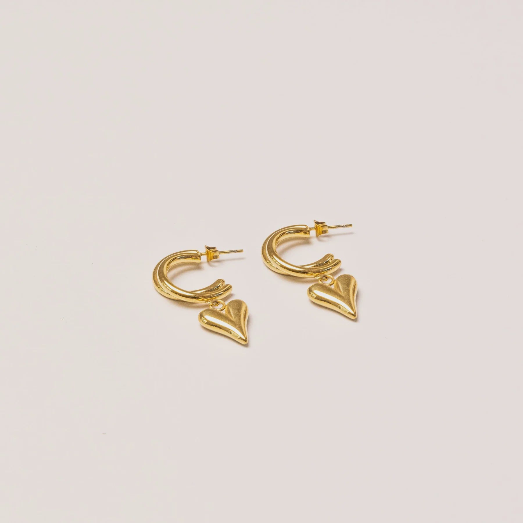Our Beloved Hoops seamlessly blend classic design with modern flair, creating the essence of love and affection. Featuring a small Heart Charm on the sleek design hoop, these earrings are perfect for everyday. Pair with our Beloved Necklace to create the perfect combo.
