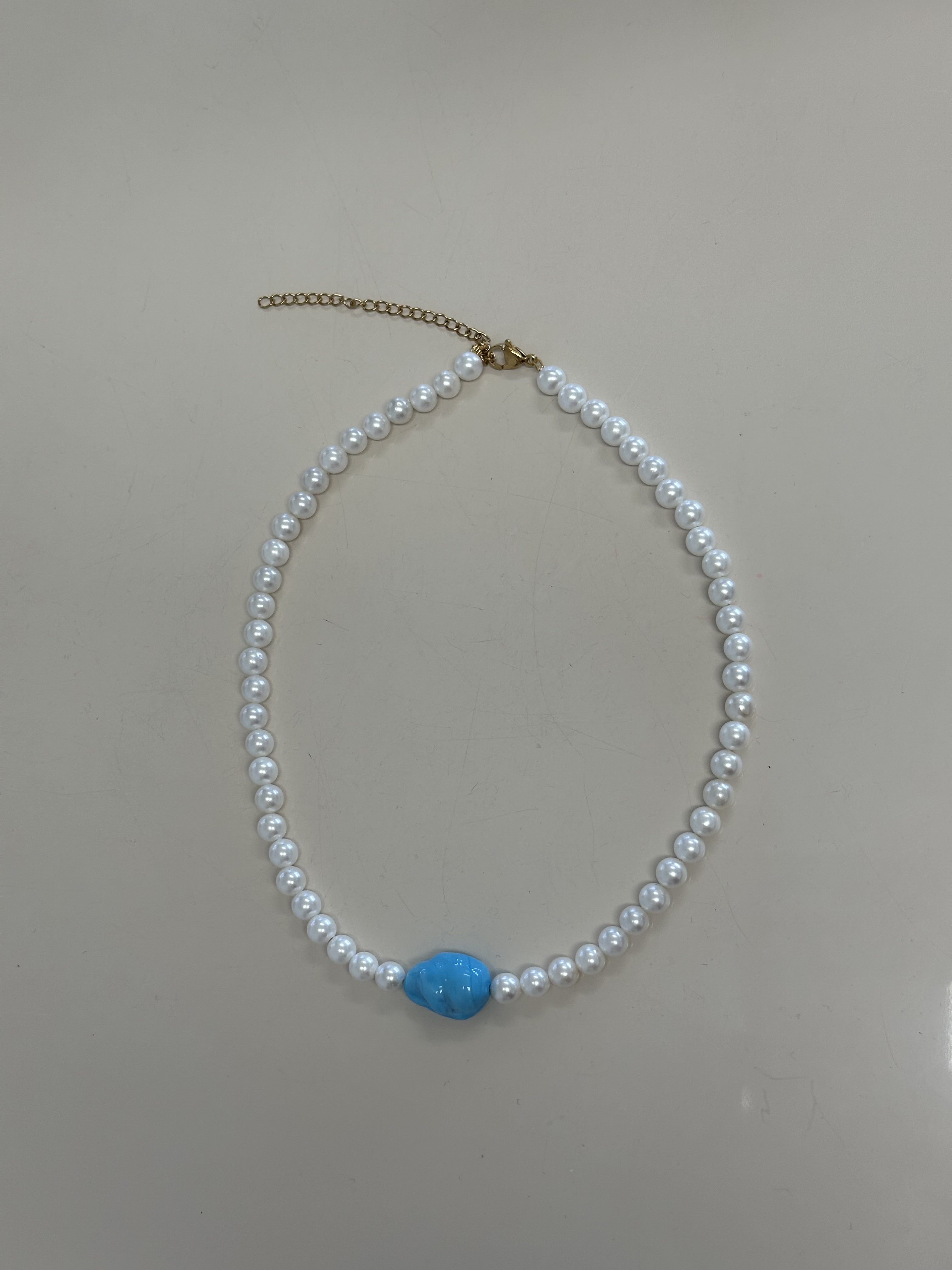 Pearl necklace with turquoise stone