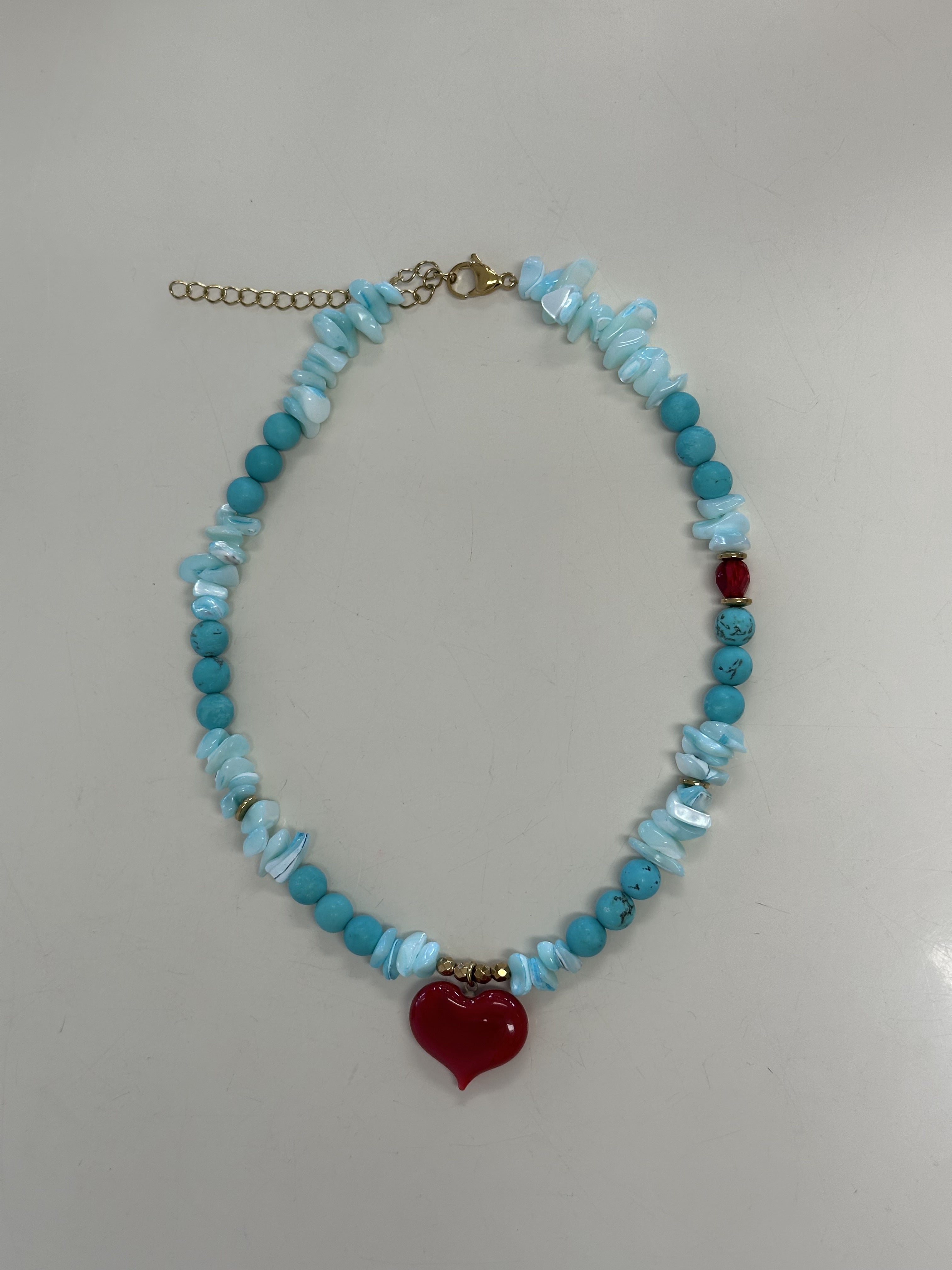Layered turquoise beads and cherry red heart pendant