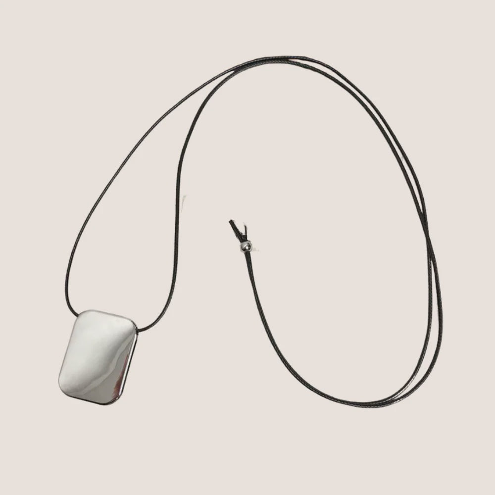 Meet the Zora Square Pendant Necklace, a bold blend of edge and elegance. Featuring a sleek chrome square pendant on a black waxed cord, this piece is fully adjustable for versatile styling, wear it long for laid-back vibes or short for a statement neckline. Inspired by the latest fashion week trends, Zora is made for the cool, fashion-forward woman who sets trends, not follows them.