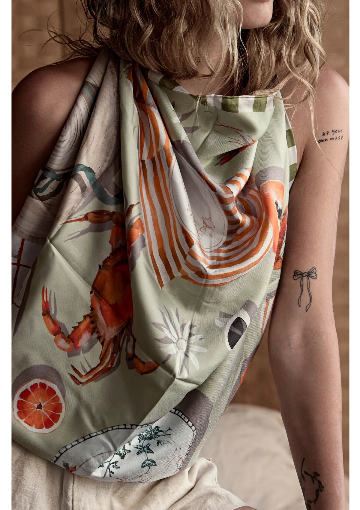 Measuring 90 x 90cm, this 14mm Silk Twill Scarf with hand rolled edges is Summer's must have accessory. Printed with hand painted designs by Whitney Spicer.