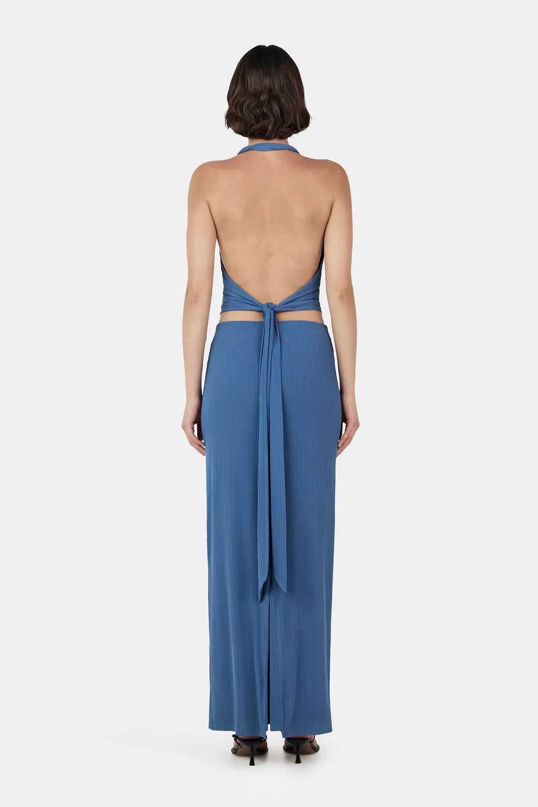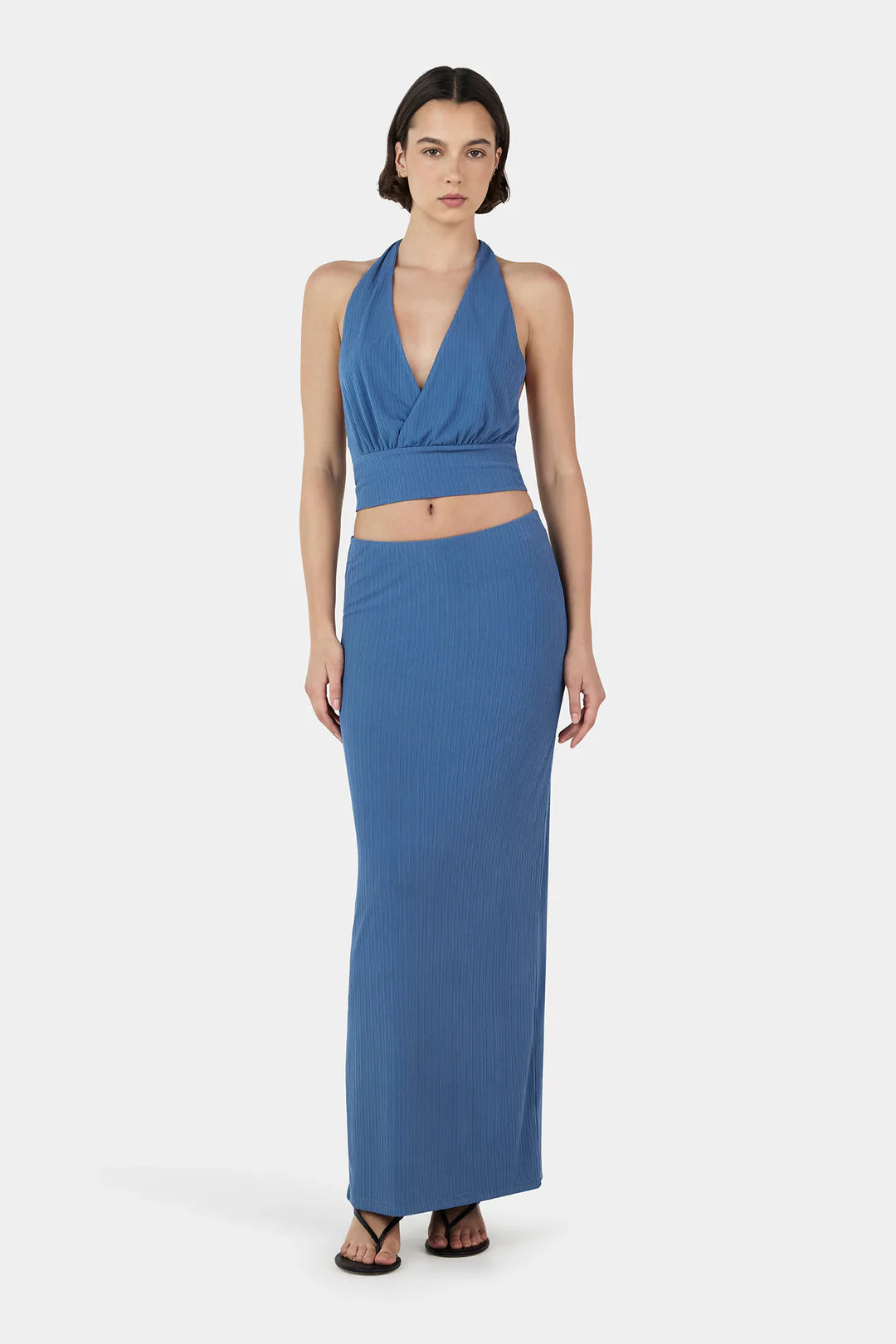 The Kiana Halter Top features loose gathered cups and a soft underbust seam for a relaxed, flattering shape. The extended underbust panel extends to the waist and ties at the back for a customisable fit. Pair with the matching Delfine Skirt for a cool tonal set.