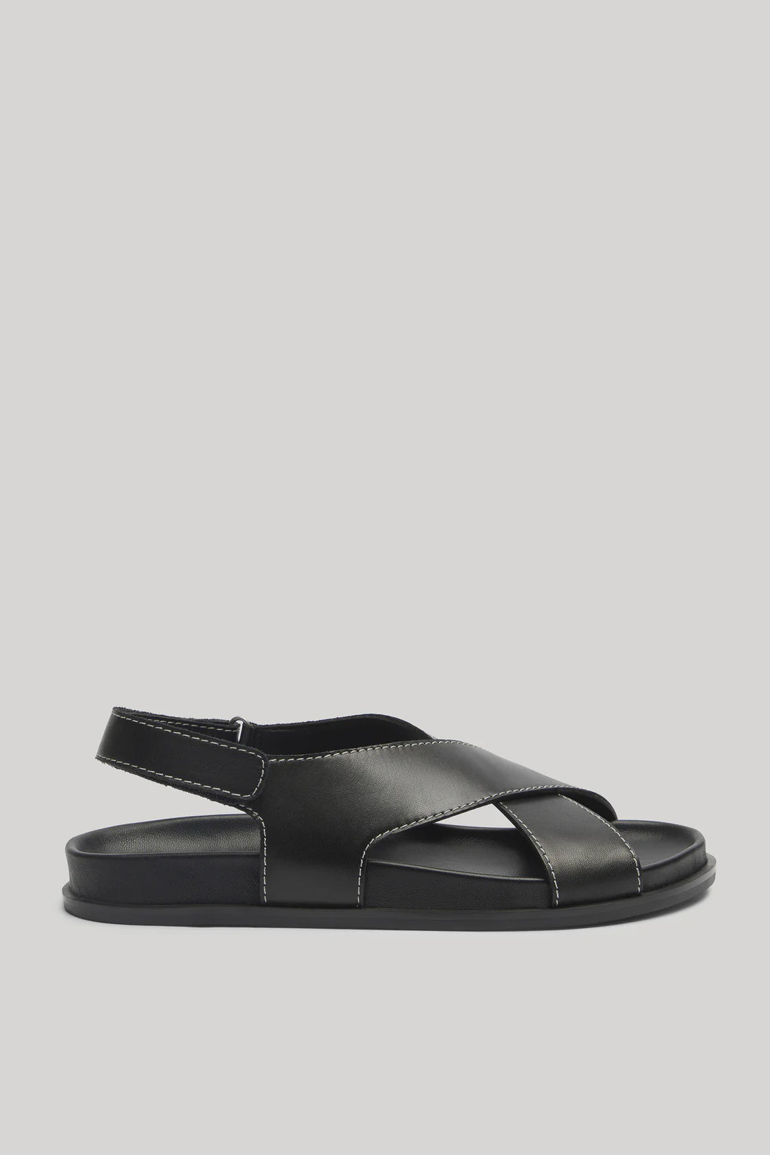 Crafted from a premium textured leather, this sandal features a classic crossover design, with a moulded footbed for comfort and velcro strap closure for adjustability.