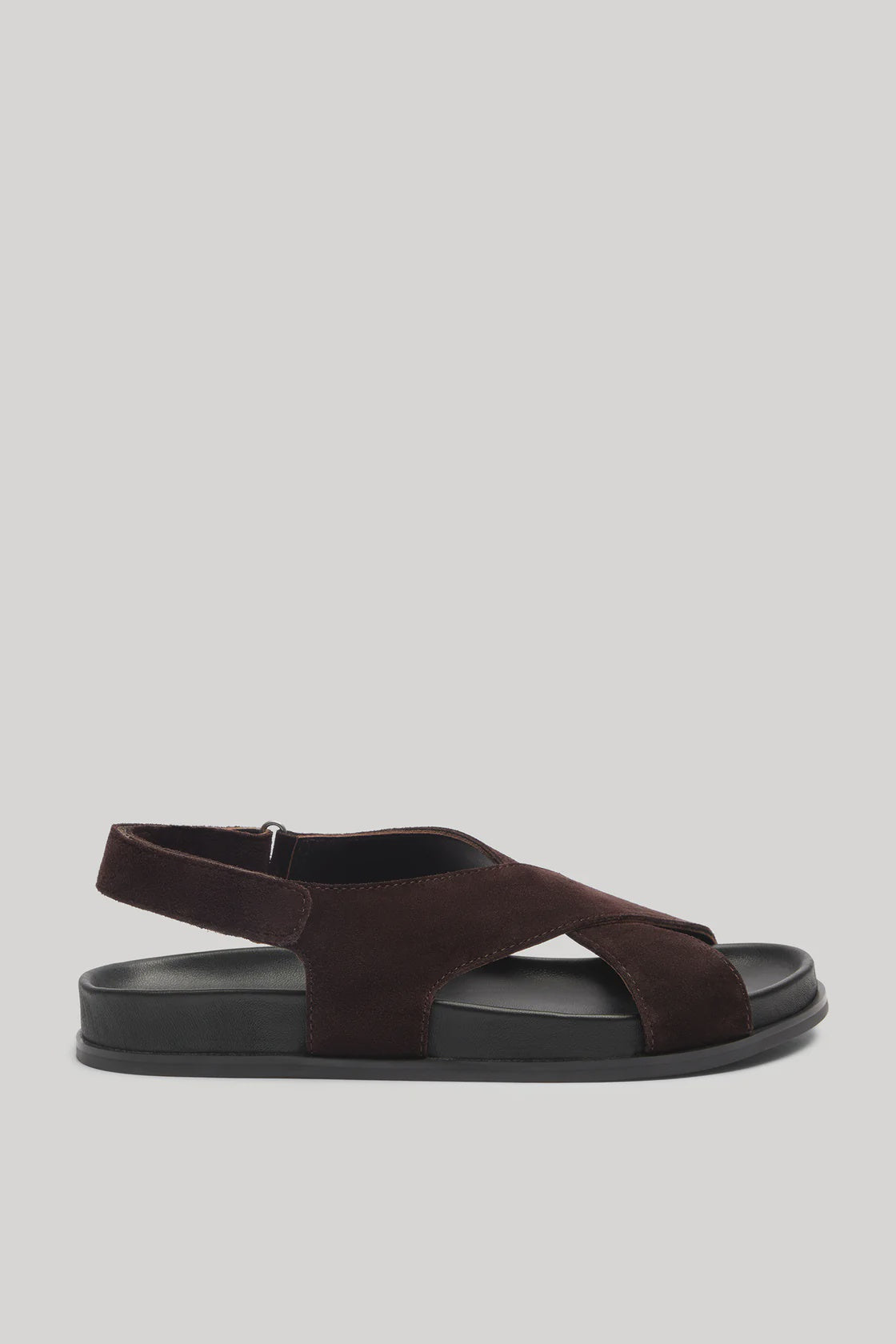 Crafted from a premium textured suede, this sandal features a classic crossover design, with a moulded footbed for comfort and velcro strap closure for adjustability.