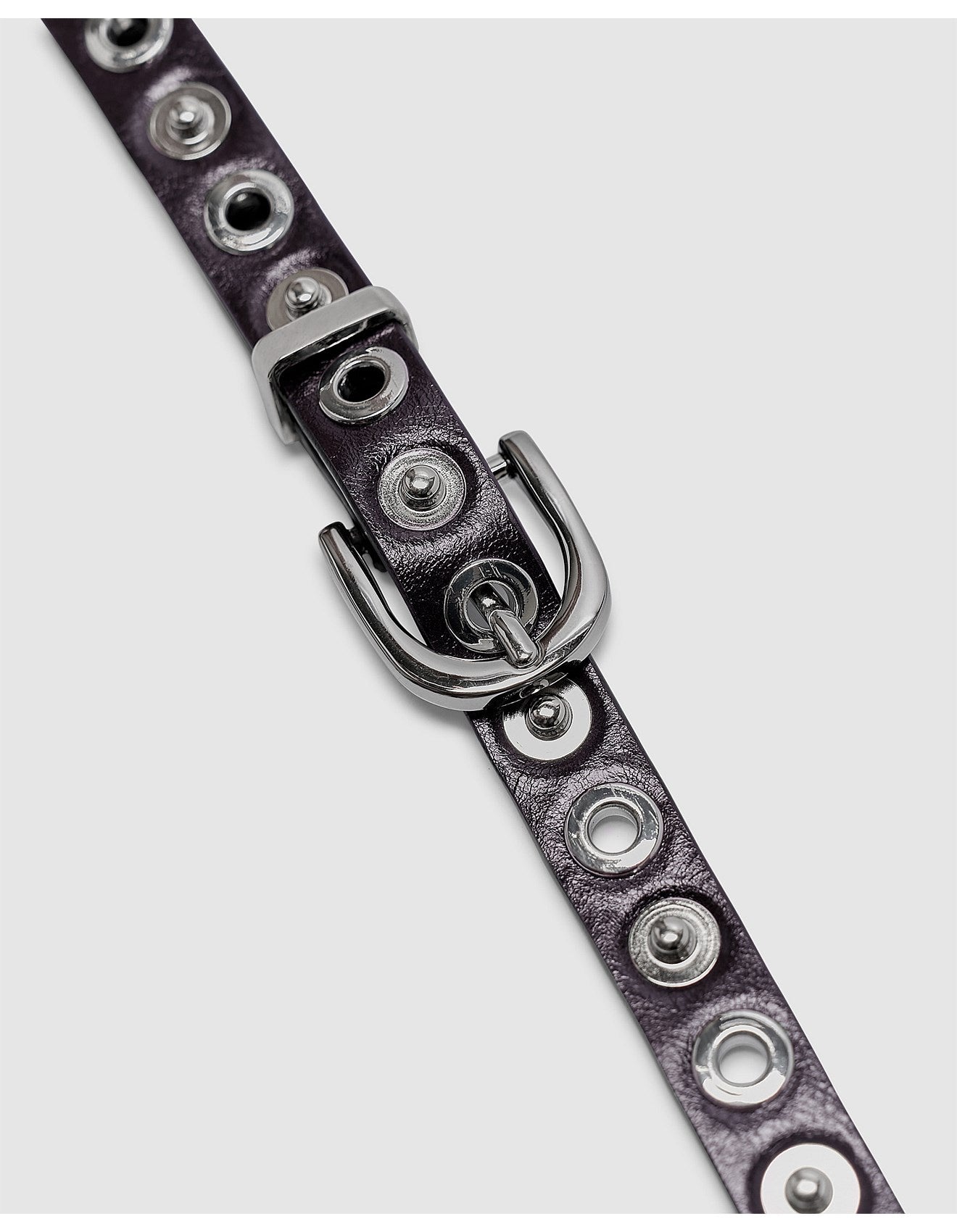 PU with a crackle effect finish, it features bold shiny silver eyelets throughout, allowing for multiple size adjustments and versatile wear.