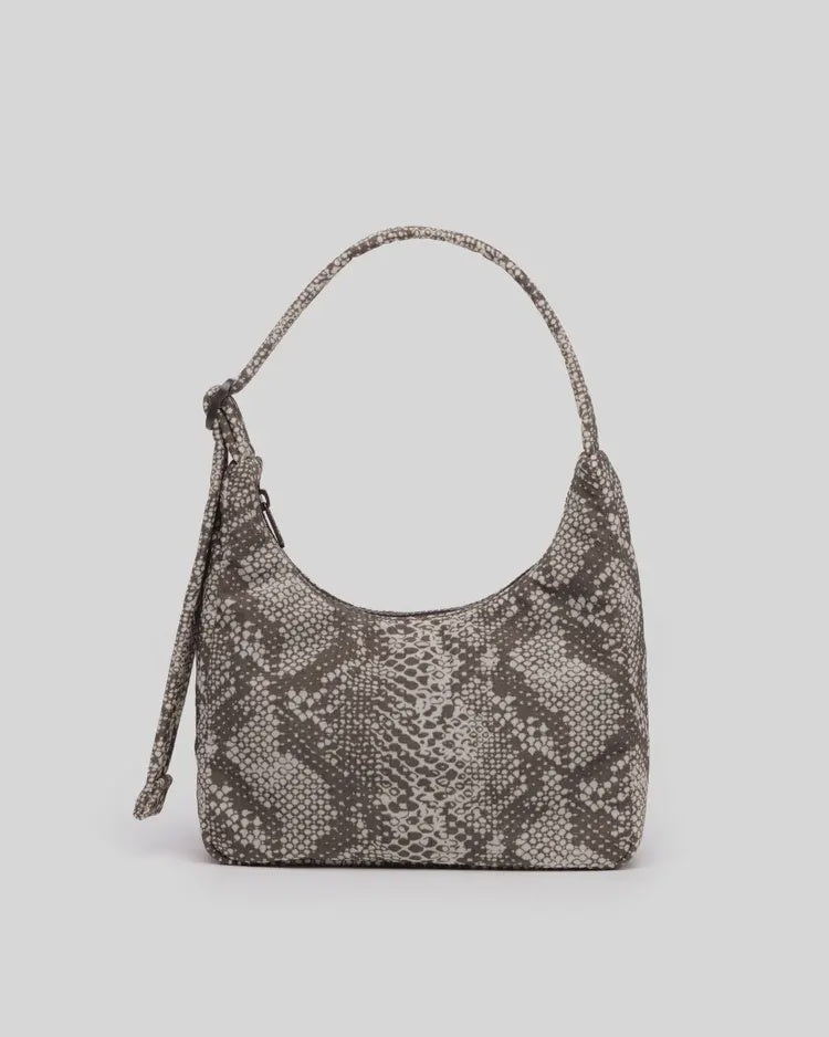 A mini version of our new nylon shoulder bag. Slightly slouchy, slightly structured. Complete with an interior pocket so everything has a place.
