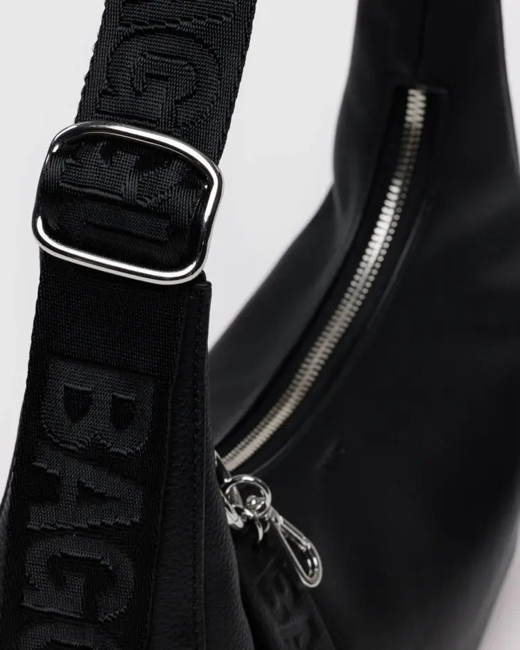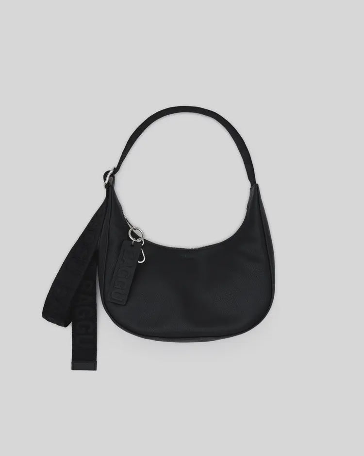 Small Recycled Leather Crescent Bag Black