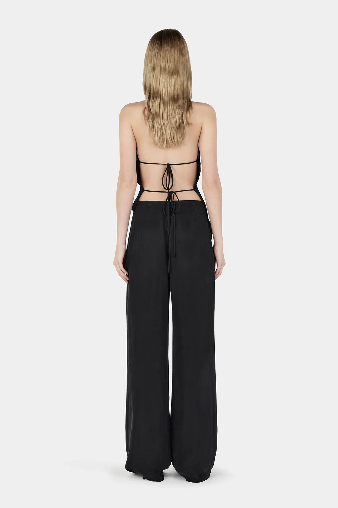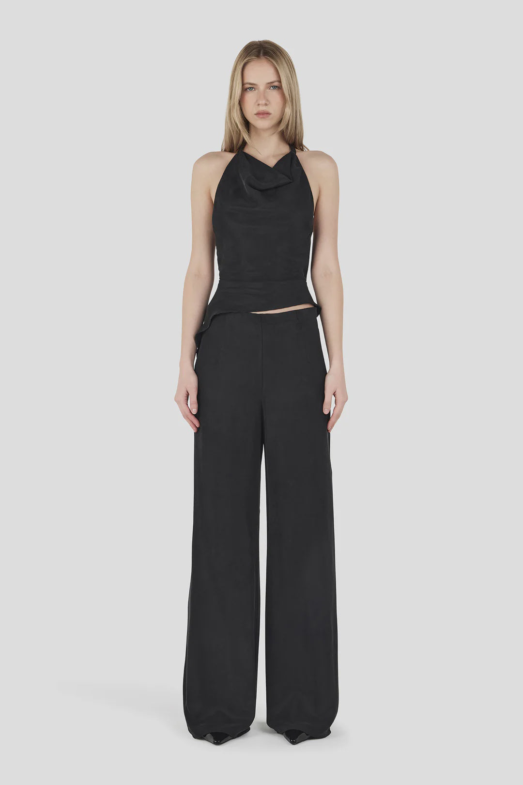 The Aeris Pant is a mid to high-rise pant crafted from soft cupro fabrication, featuring a wide-leg silhouette and a gently elasticated waistband. Finished with a side-seam invisible zipper for a sleek silhouette. Pair with the Iris Halter for a complete set.