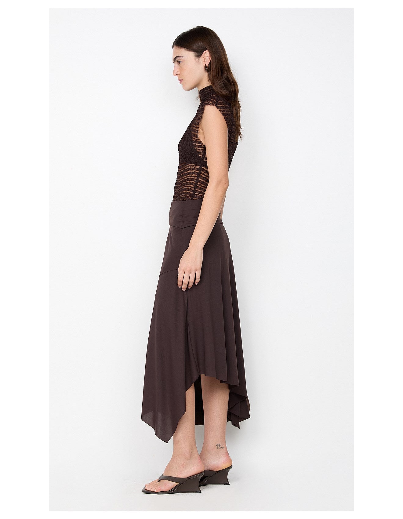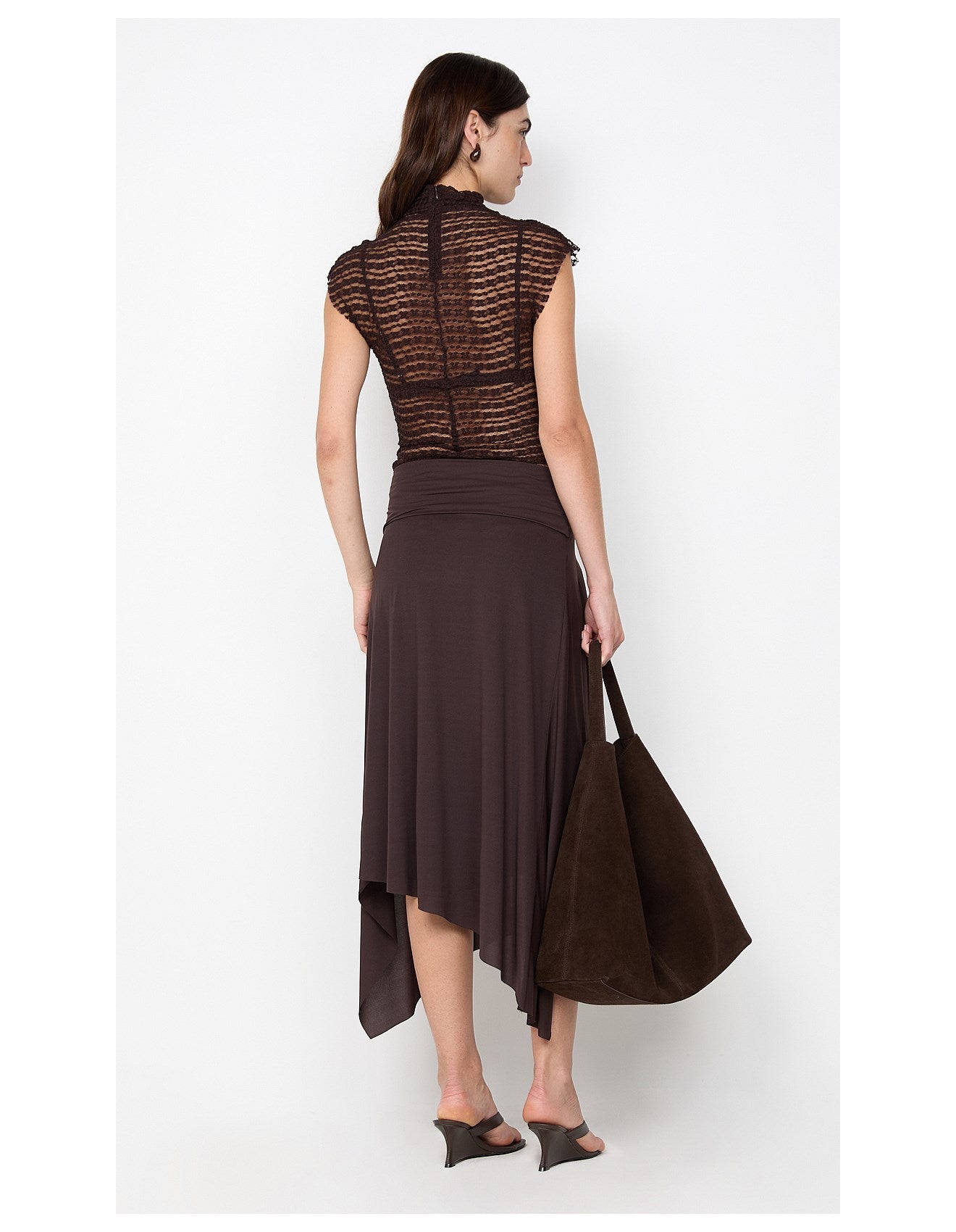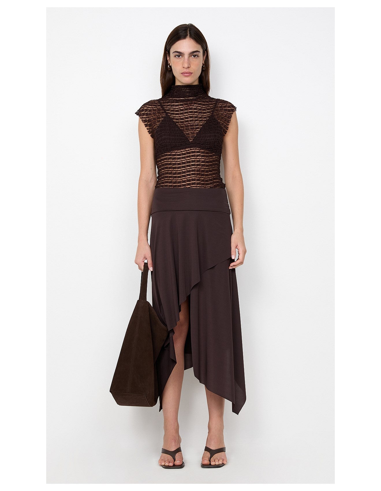 Gathered panel fits to the waist featuring a twist detail and small cutout