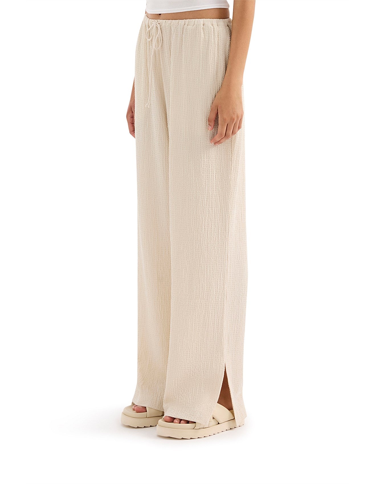 The Palma Pant is made from a lightweight textured fabric which has a dry hand feel. The silhouette is relaxed with a wide full length leg. Features include an elasticated waistband with a drawcord and side seam pockets. These pants are fully lined.