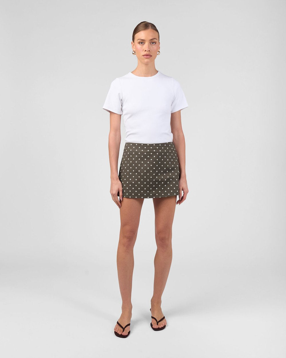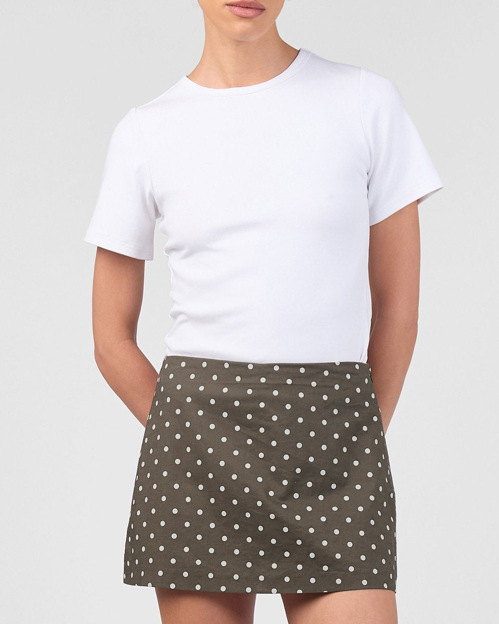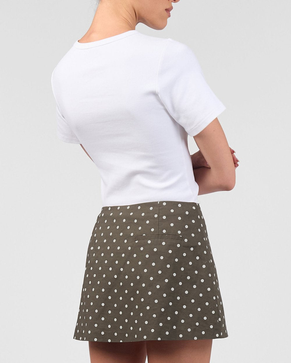 We still not over polka dots with this MVN Polka Dot Skort that comes in muted brown colour in a skort style. It looks great with a white plain tshirt tucked in the skort or you can try opting for the matching MVN Funnel Neck Bomber Jacket for the perfect weekend outfit.