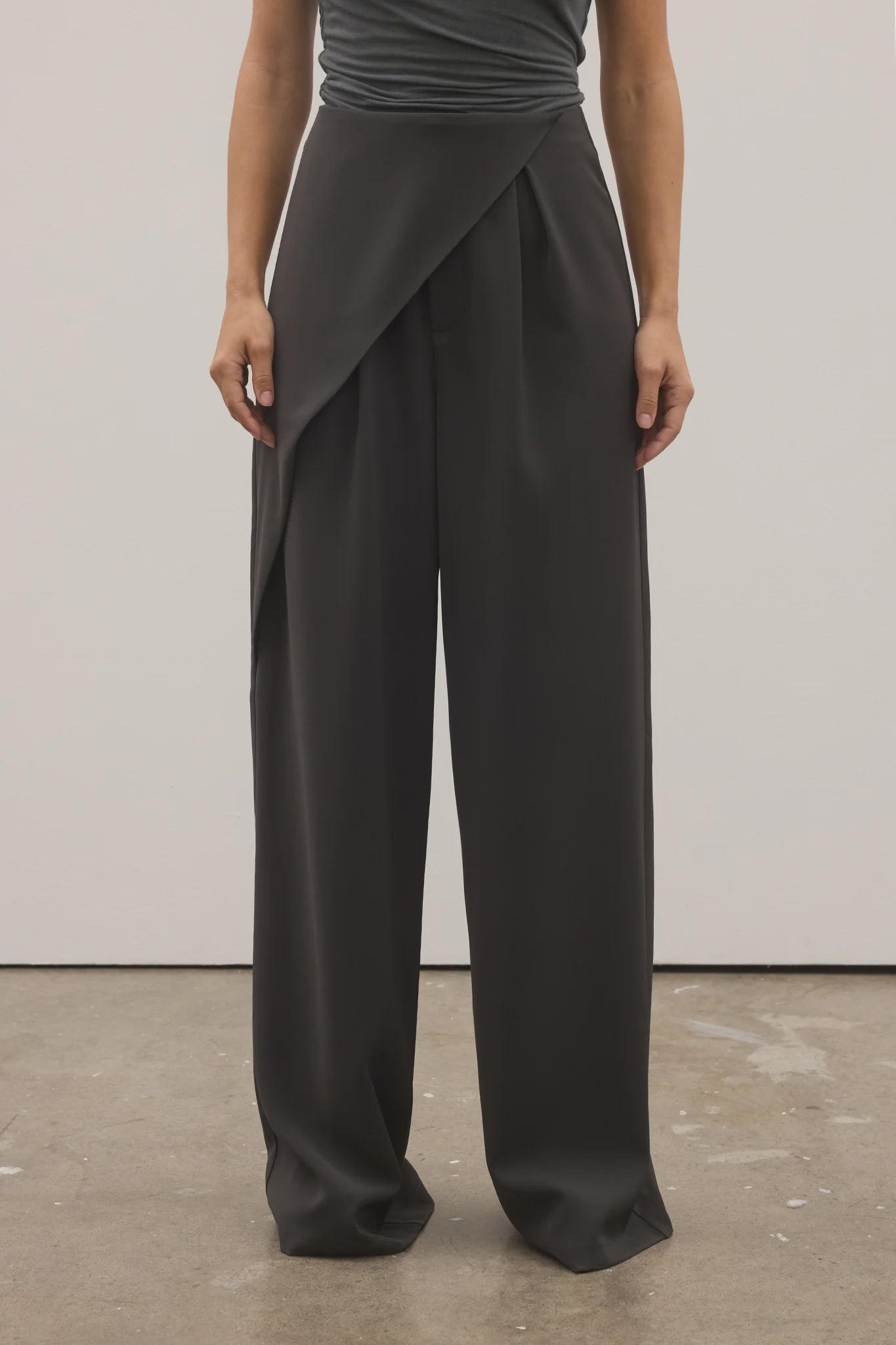 Rue Pant is designed with a fluid wide-leg silhouette and a mid to low-rise fit. Featuring an asymmetric wrap panel at the front, it offers subtle structure through the waist while maintaining an effortless drape through the leg. Finished with a clean back seam for a streamlined look.