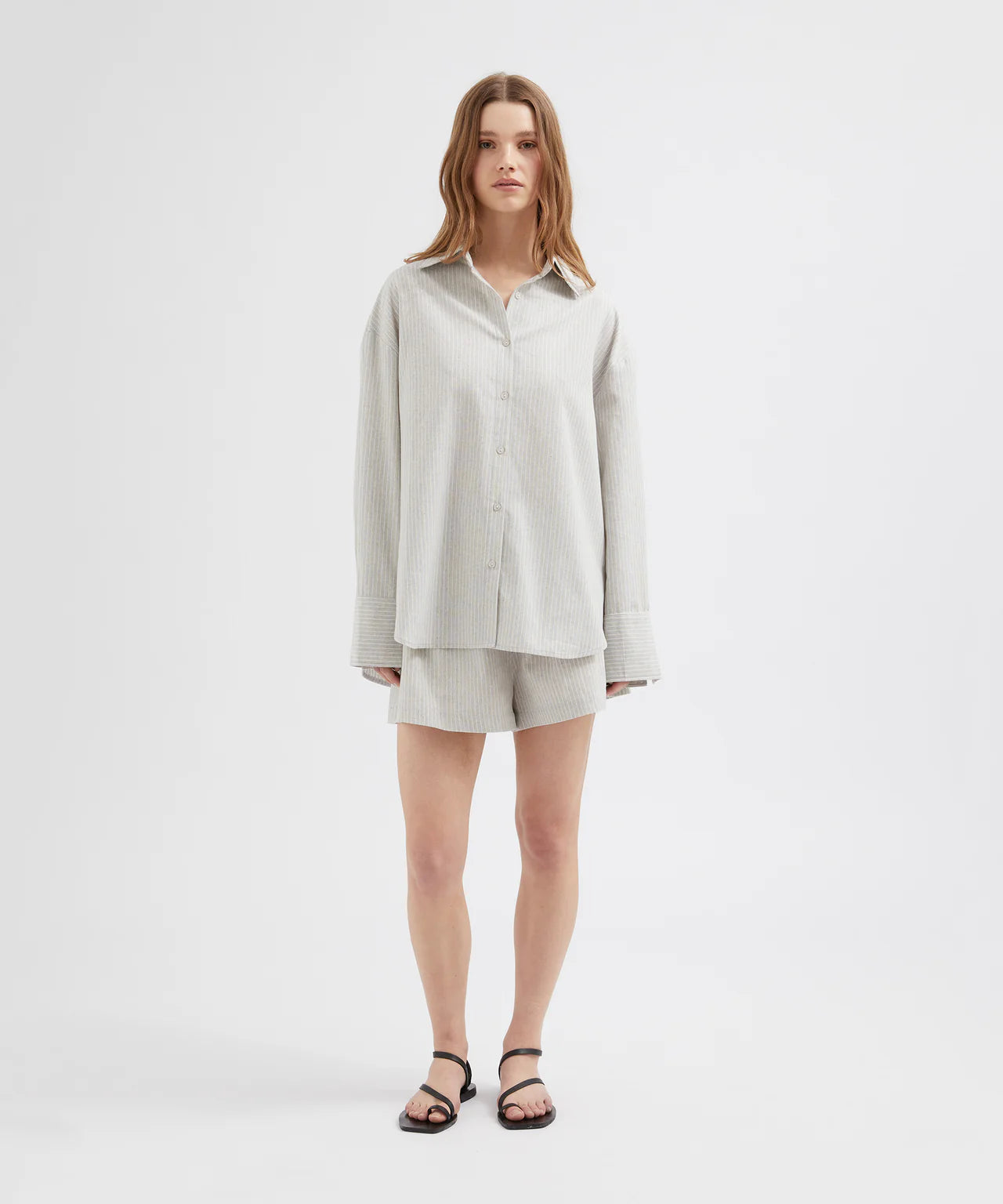 Relaxed and ready for anything. The striped linen-blend shorts feature an elasticated drawstring waist with side seam pockets.