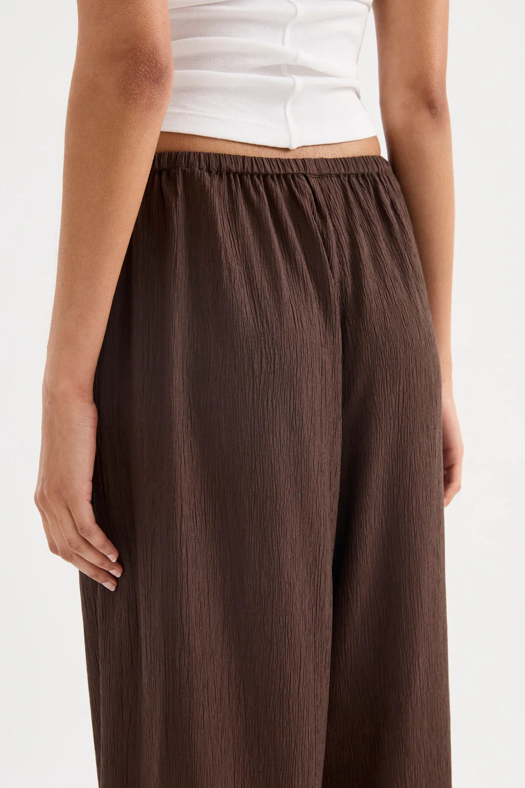 The Winfield Pant is made from a crinkle textured fabric which has a dry, lightweight hand feel. The silhouette is relaxed with a wide full length leg. Features include an elasticated waistband and side seam pockets.