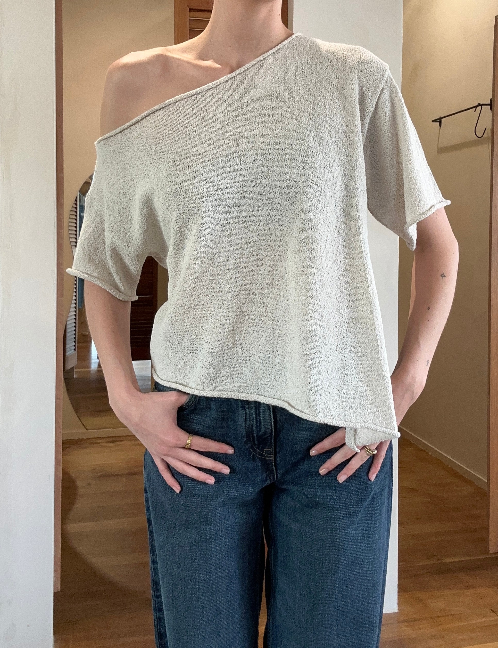 70% Acrylic 30% Polyester Asymmetrical Shoulder Boucle Knit Rop